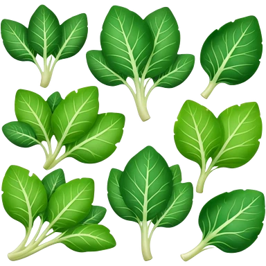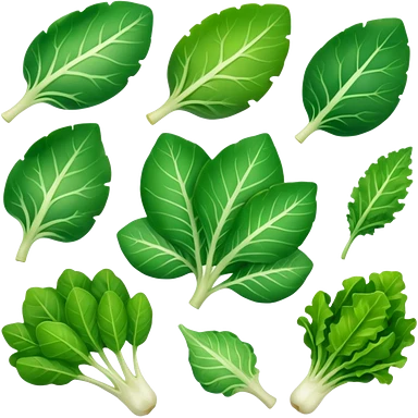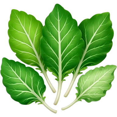 loose mesclun leaves mixed baby salad greens arugula spinach red chard frisée oak leaf lollo rosso varied shapes colors textures greens purples reddish veins delicate edges curls natural look fresh soft highlights no water drops 3D clean minimal soft shadows transparent background emoji scale emoji