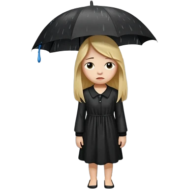 غمگین🧍♀️🌧موهای بلندلباس مشکی بدون چتر ،صورت افسرده بارون emoji