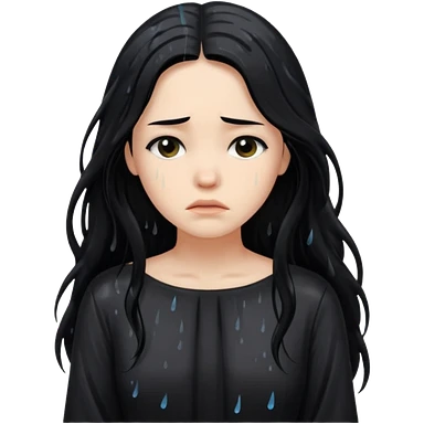 غمگین🧍♀️🌧موهای بلندلباس مشکی بدون چتر ،صورت افسرده بارون بدون چتر،موهای مشکی emoji