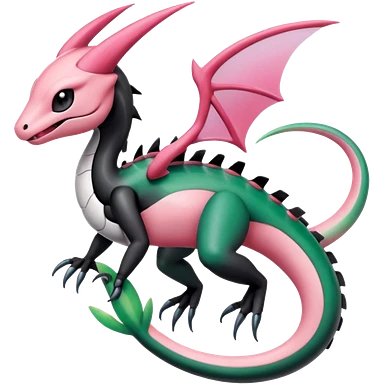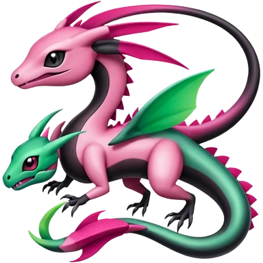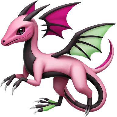 Pink-black-white-gradients Meloetta-Rayquaza-Salandit-Pokémon-Fakémon-creature-fusion-hybrid emoji