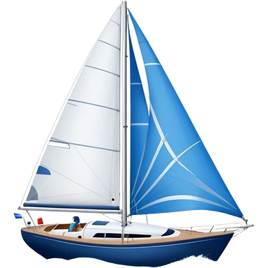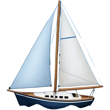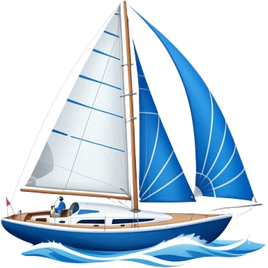 A sleek sailboat emoji with visible wind gust lines and flowing sails, representing perfect sailing conditions. Flat vector design, blue and white color palette. emoji