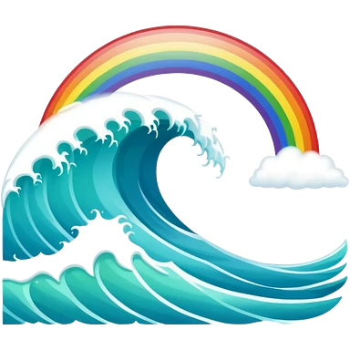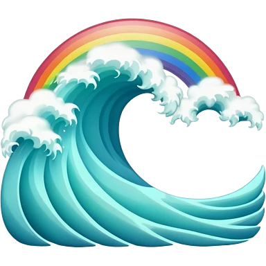 An ocean wave emoji with a rainbow emerging above it, representing peace and positivity after a storm. Minimal, glossy emoji design, vibrant yet calm color scheme. emoji