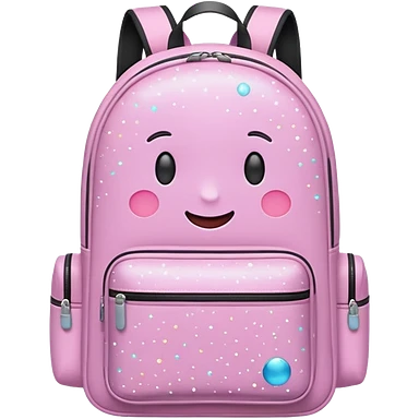 Pack & Go A cheerful emoji-style travel backpack with small sparkles around it, symbolizing excitement for a new journey. Simple flat style, pastel tones, white background. emoji