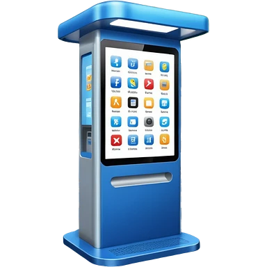 Digital Kiosk + blue interface + public info, Street Advertisements. emoji