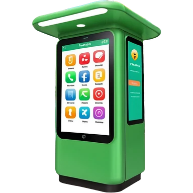 Digital Kiosk + green interface + public info, Street Advertisements. emoji