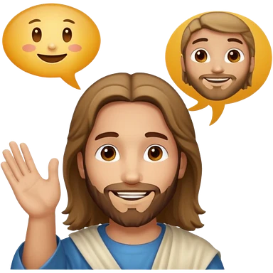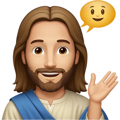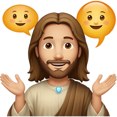 jesus sonrie y una burbuja de dialogo dice gracias por tu compra emoji