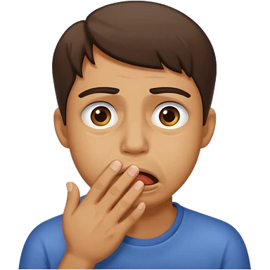 Disgust - strong feeling of revulsion or aversion - about to vomit. hand over mouth emoji