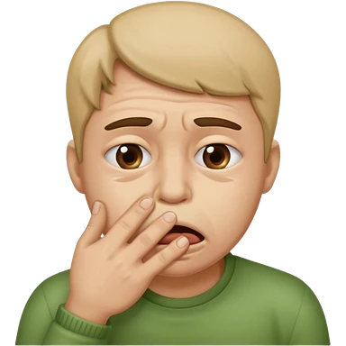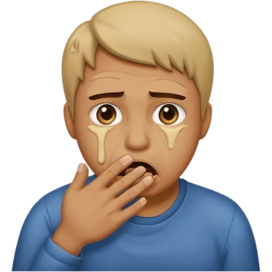 Disgust - strong feeling of revulsion or aversion - about to vomit. hand over mouth. not crying emoji