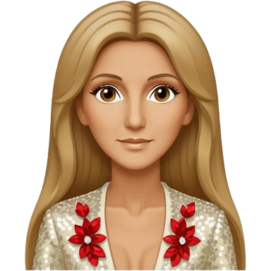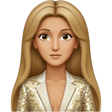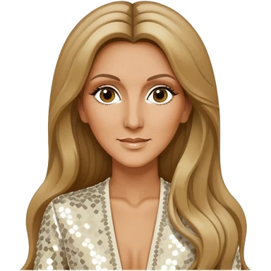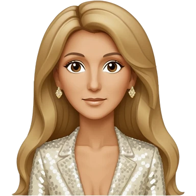 Celine Dion with long dark blonde hair, ivory sequin outfit emoji
