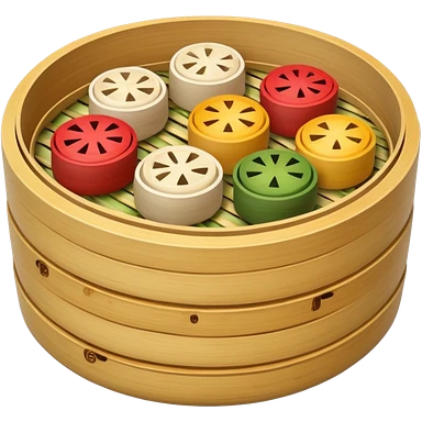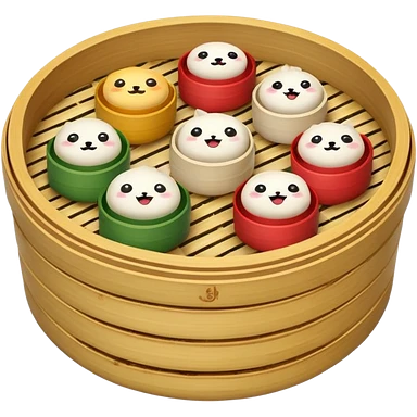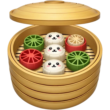 Assorted dim sum in a bamboo steamer emoji