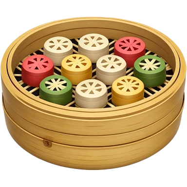 Realistic Dim Sum pieces in a bamboo stimmer basket emoji