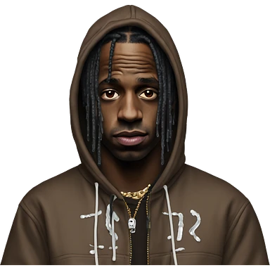 travis scott dressed drip with a text upon his head saying darin emoji