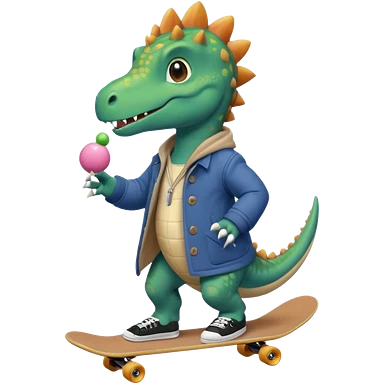 dinosaur on skateboard eating ice cream emoji