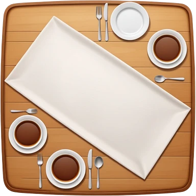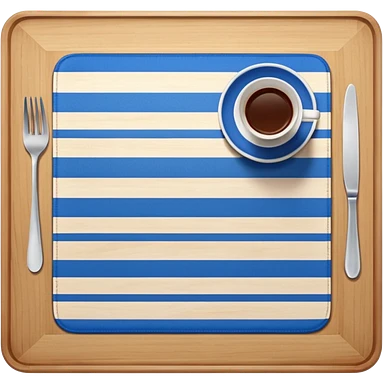 top view of an empty dining table with a white and blue striped mat over it. emoji