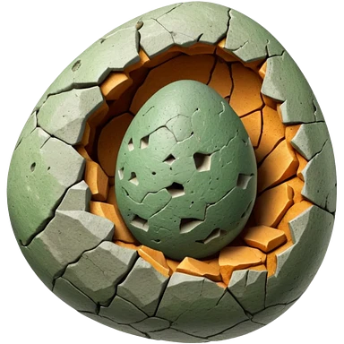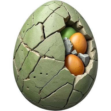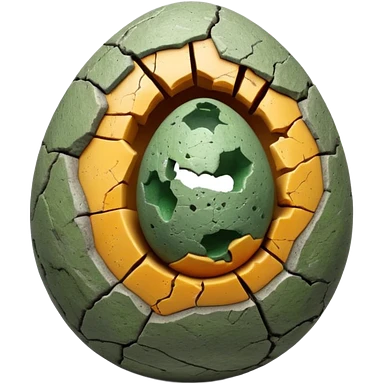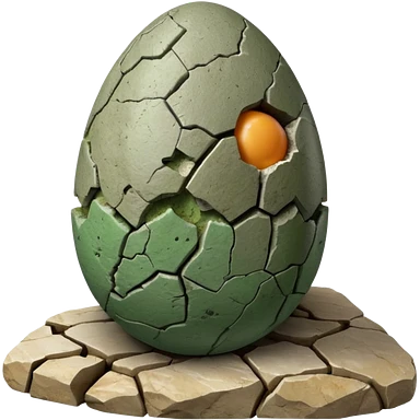 3D render of Dino Egg, embedded in a chunk of rough sedimentary rock, cracked stone texture, ancient fossil aesthetic, speckled greenish-grey stone egg with a crack, matte dry finish, Apple emoji style, isolated on white background --v 6.0. emoji