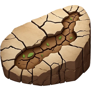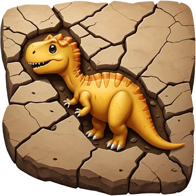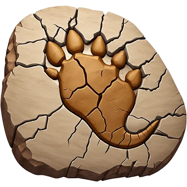 3D render of Dino Footprint, embedded in a chunk of rough sedimentary rock, cracked stone texture, ancient fossil aesthetic, deep indentation in dried brown mud, matte dry finish, Apple emoji style, isolated on white background --v 6.0 emoji