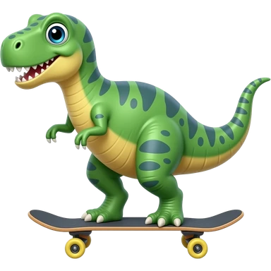 Dinosaur on a skateboard and standing on the black color elephant and cat is coming from behind rat is jumping on the front emoji