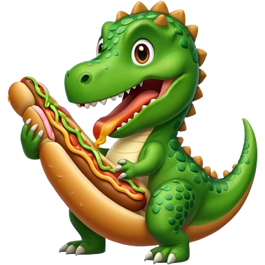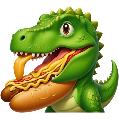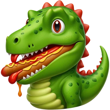 dinosaur eats hotdog, portrait emoji | AI Emoji Generator