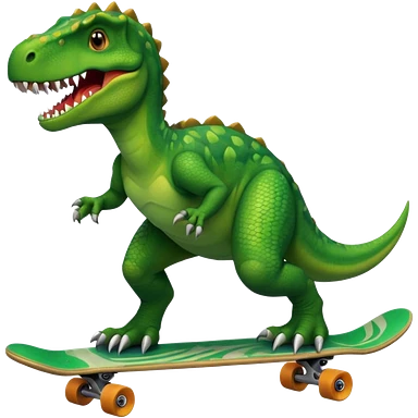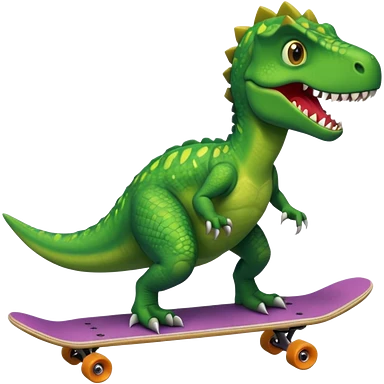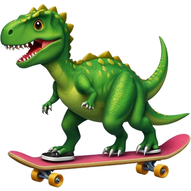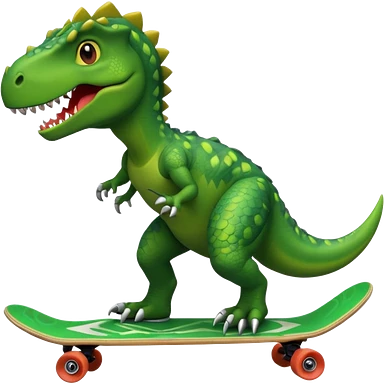 Dinosaur skateboarding at the skate park wearing a t-shirt and doing six seven and dancing emoji