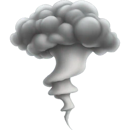 3D render of Tornado, miniature weather phenomenon, volumetric particle effects, swirling dusty grey funnel cloud, elemental energy, Apple emoji style, isolated on white background --v 6.0. emoji