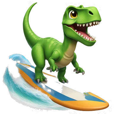 dinosaur riding a surfboard with sunglasses emoji | AI Emoji Generator