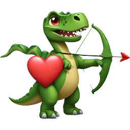 Dinosaur with heart sunglasses holding a heart bow and arrow emoji
