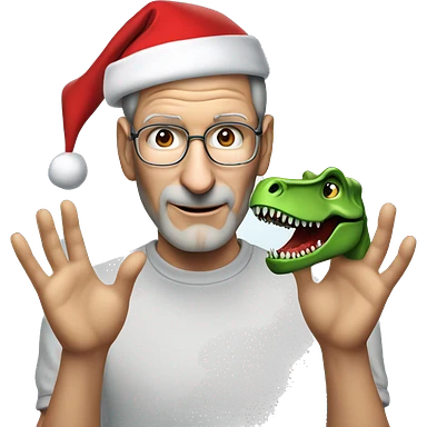 Steve Jobs with a Santa hat and dinosaur’s hands emoji