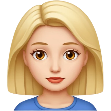 Joven mujer, de cabello bajo los hombros rubio con ondas y partidura al medio. veterinaria de perros, vacas y caballos, con traje clínico celeste, sin delantal blanco emoji