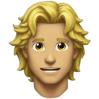 Dio Brando from "JoJo's Bizarre Adventure: Stardust Crusaders" has long blond hair, piercing eyes, and a sharp, angular face. He is tall and muscular, often seen wearing a flamboyant yellow outfit with green motifs and a headband. emoji