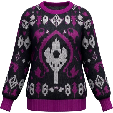Still life, render, isolated, whimigoth pattern print and color scheme, womens sweater, highly detailed, 8k. No emoji icons, no emoji faces, no human figures emoji