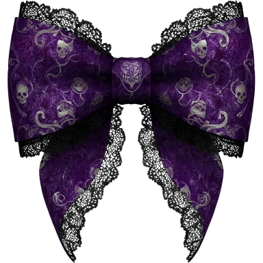 Whimsical Gothic isolated 3d rendering fabric bow, transparent background with lace and skulls. Must be extremely detailed, a whimigoth color scheme and print, appear as though its real fabric, 8k hd, 600 dpi (seed:::754699128) emoji