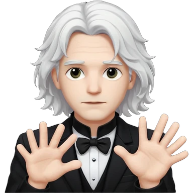 Male Goth with Top Hat Wavy shoulder-length hair, white skin, black suit and gloves, pale skin tone, white long hair emoji