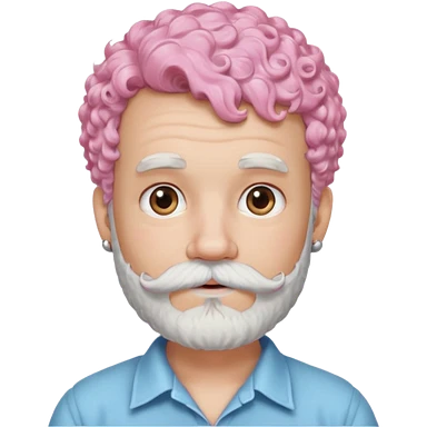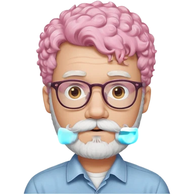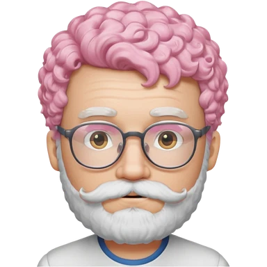 very white bearded and white mustached, pink short curly haired, wearing glassess emoji