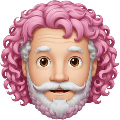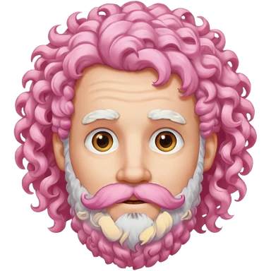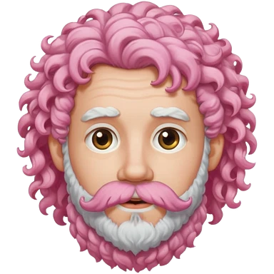 very white bearded and white mustached, pink short curly haired, wearing ear accessories emoji