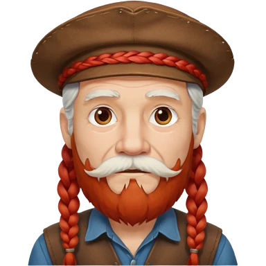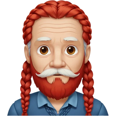 very old, white bearded and white mustached, ginger thick haired, braided, earringed emoji