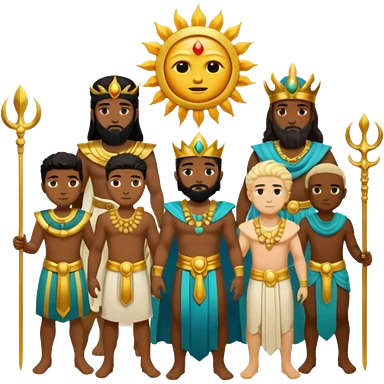 divine synergy between earth God, sun God, sea God and Death God emoji