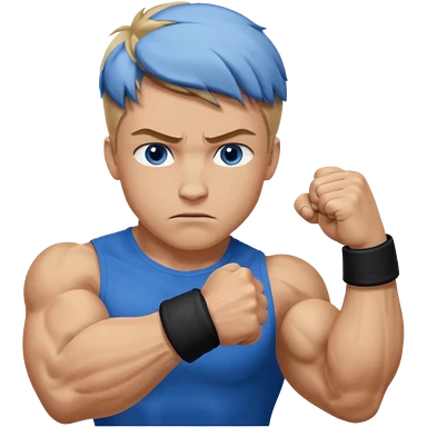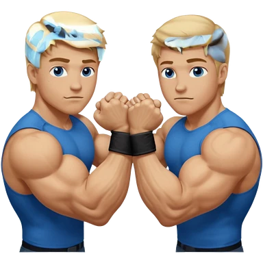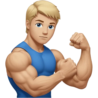 DIRTY BLONDE HAIR BLUE EYES BIG BICEPS FOR ARM WRESTLING YOUNG MAN emoji | AI Emoji Generator