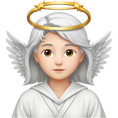 Dirty narrow older angel face with blonde hair and broken halo emoji | AI Emoji Generator