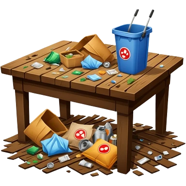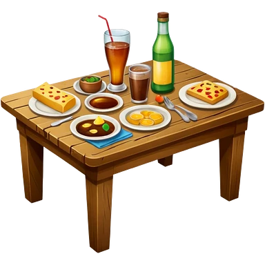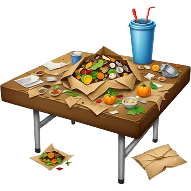 dirty table with empty plates and glasses emoji | AI Emoji Generator