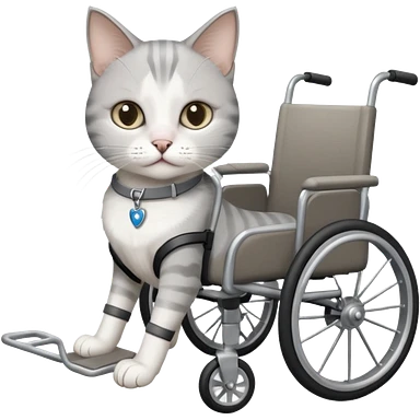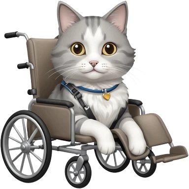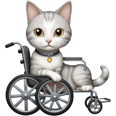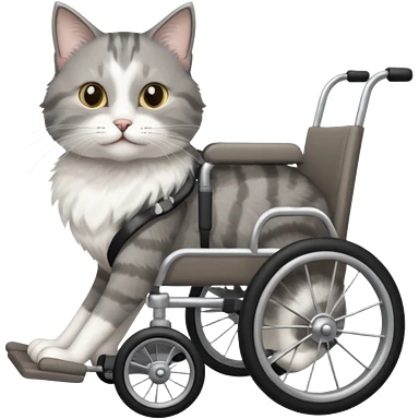 disabled grey and white cat using pet wheelchair emoji | AI Emoji Generator