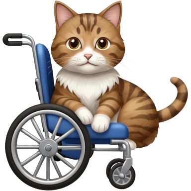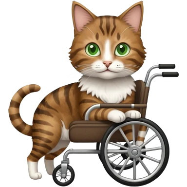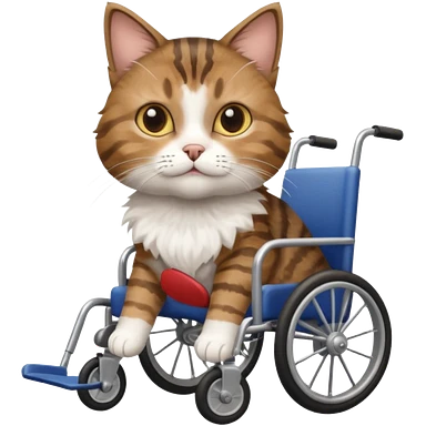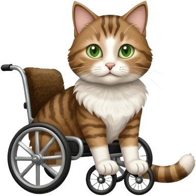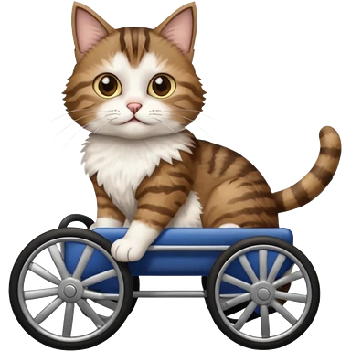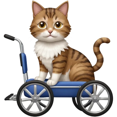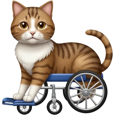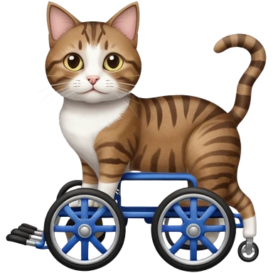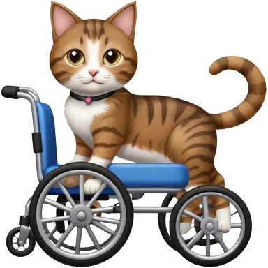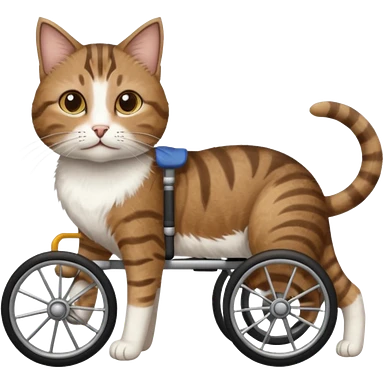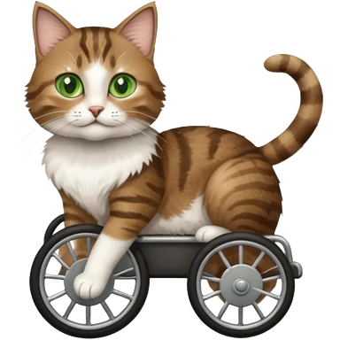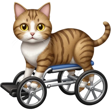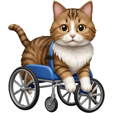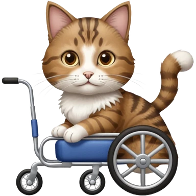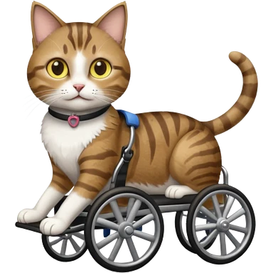 disabled grey and white small cat using a wheelchair made for cats emoji