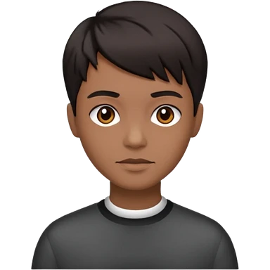 personagem com corte de cabelo espetadinho curto indo até o pescoço, cabelo castanho escuro, olho castanho escuro, sombrancelha castanho escuro, óculos sem aro prata quadrado. rosto fino emoji