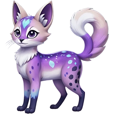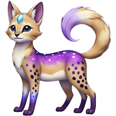 galactical shiny white-stars-spotted glorious iridescent divine exotic cute cool beautiful realistic Meloetta-caracal-civet-sergal-oncilla-animal-Fakémon-hybrid-fursona (full body) emoji