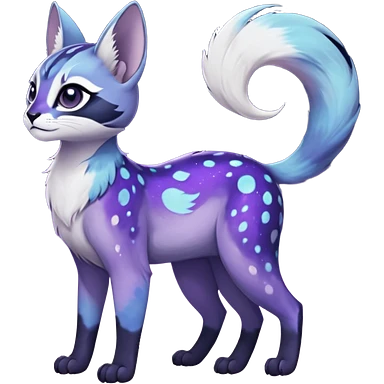 Colorful black-violet-indigo-purple-gradients nebulae nebula starry galactical shiny white-stars-spotted glorious iridescent divine exotic cute cool beautiful realistic Meloetta-caracal-civet-sergal-oncilla-animal-Fakémon-hybrid-fursona (full body) emoji