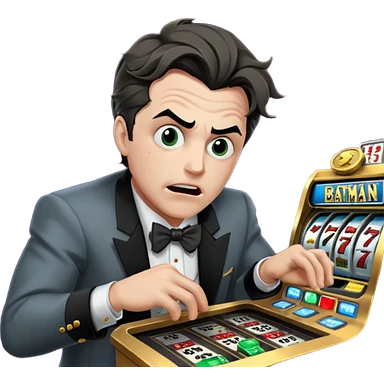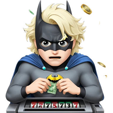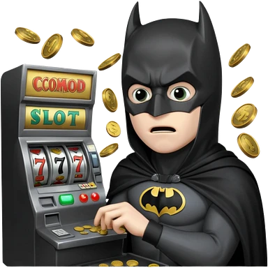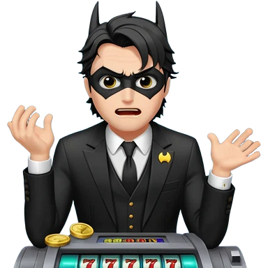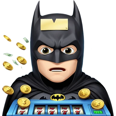 disheveled bat man losing money at a slot machine, panicked face, coins flying emoji | AI Emoji Generator