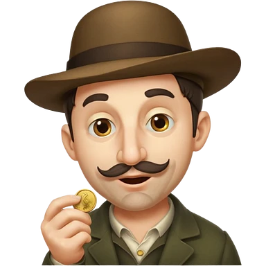 Dishonest big nosed side curled small hat greedy individual clipping a coin emoji | AI Emoji Generator