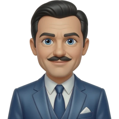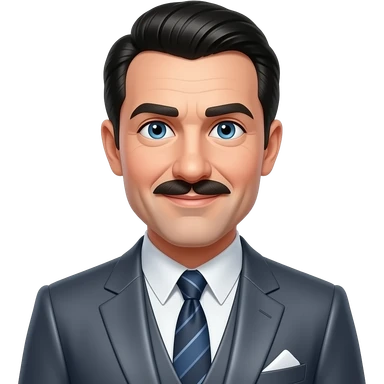 Walt Disney with blue eyes, black hair and thin mustache, slate metallic suit emoji