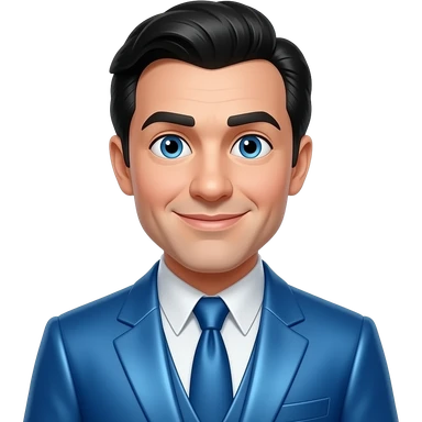 Walt Disney with blue eyes, black hair, blue metallic suit emoji