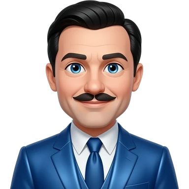 Walt Disney with blue eyes, black hair and thin mustache, blue metallic suit emoji