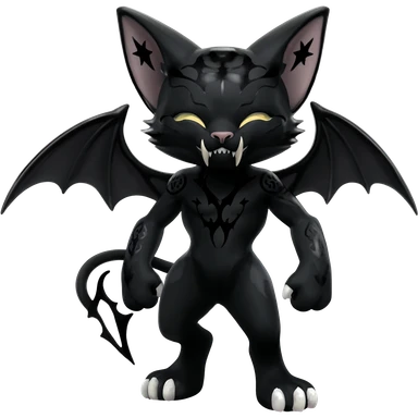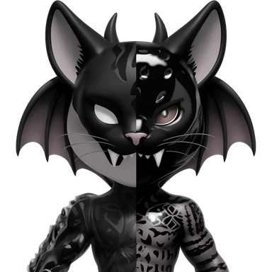 dark spooky badass cool shiny glossy smooth soft Black edgy Noivern-Noibat-Purloin-Torracat-Lykoi-Caracal-cat-Fakemon-fusion-hybrid-creature with bat wings on head as ears, big fangs, gothic markings emoji